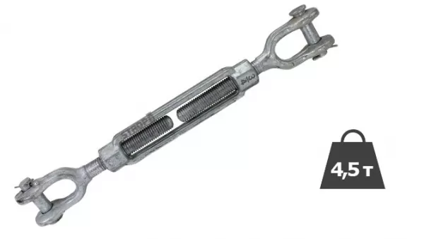 Талреп М25 вилка-вилка з робочим навантаженням 4.5 тонни. Талреп виготовлений з вуглецевої сталі, має оцинковане покриття.