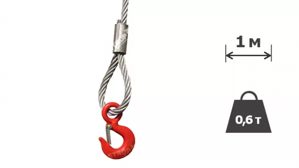 Характеристики 0,63т х 1м Строп канатний одногілковий