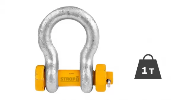 Скоба такелажна типу G2130 вантажопідйомністю 1 тона виготовлена з високоміцної сталі, має оцинковане покриття, коефіцієнт запасу міцності 6:1 та відповідає стандарту ДСТУ EN 13889:2014.