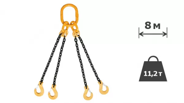 Характеристики 11,2т х 8м Строп ланцюговий чотирьохгілковий