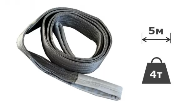СТП 4,0/5000 - Строп текстильний петльовий вантажопідйомністю 4 тонни, довжиною 5 метрів. Строп виготовляється зі зшитої вдвічі стрічки сірого кольору шириною 120 мм. Петлі стропу додатково захищені від перетирання.
