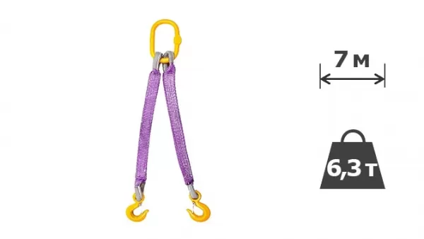 Характеристики 6,3т х 7м Строп текстильний двогілковий